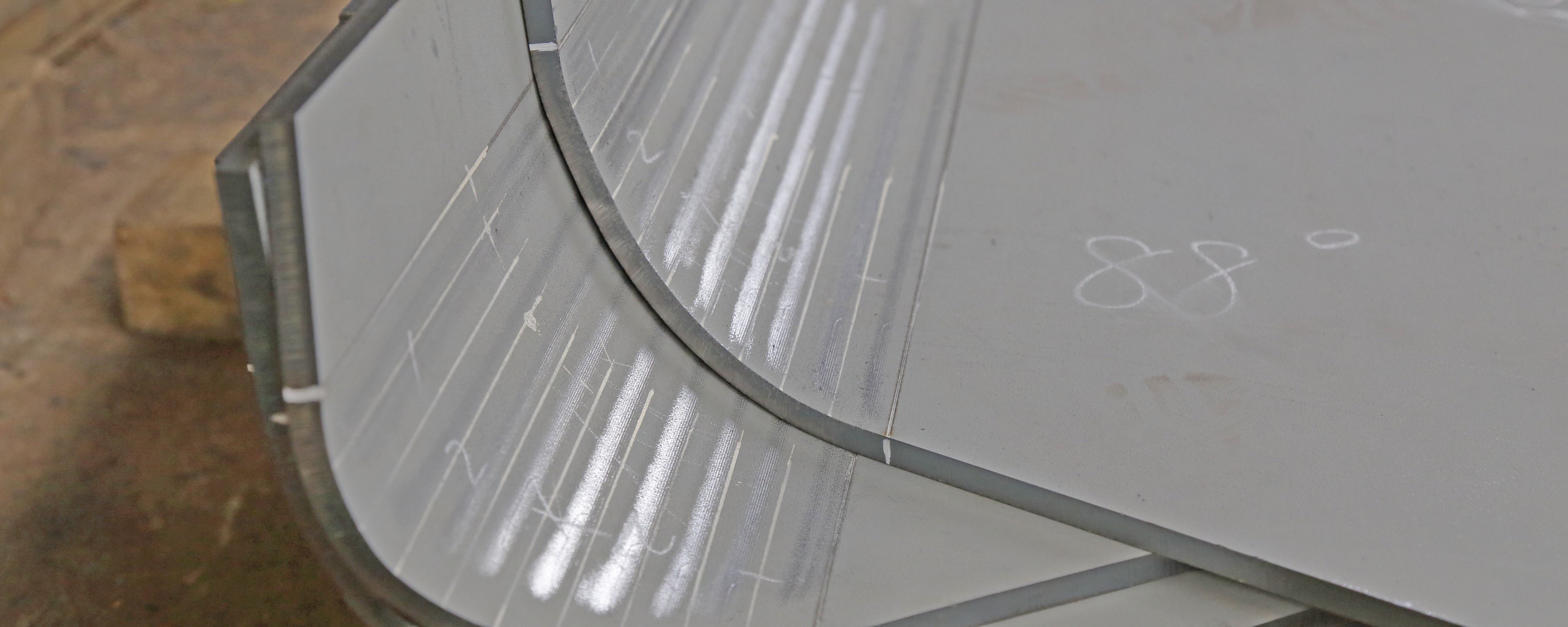 鉄板の曲げ加工や、製缶部品の歪み直し、コニカル、角丸、エビ管他、板取り展開等、 加工品の大小は問わず、様々な曲げ加工に対応可能です。